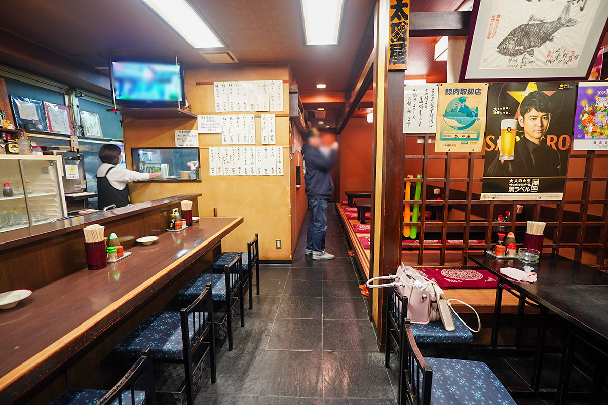 昭和の面影を残す渋い居酒屋のような一軒家レストランで、母娘で経営されています。L字型のカウンター席(約5〜6席)と小上がりがあり、家庭的で落ち着いた空間です。