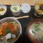 あたたかい雰囲気でゆったりお寿司を楽しむことができます。 秀寿司オリジナル「あんこう押し寿司」は、あんこうの柳肉(白身)・肝・水袋(胃袋)・皮が一度に味わえる逸品! そして、魚だけでなくお肉も食べたい人には、豚の角煮、ローストビーフ、串焼きなどお肉も食べることができます。 磯原駅から徒歩3分。リーズナブルなランチも大好評。